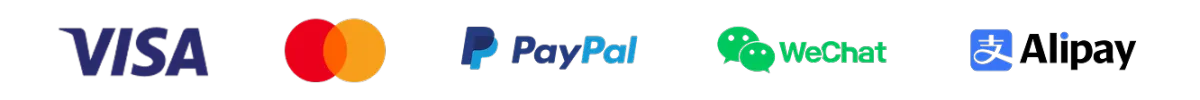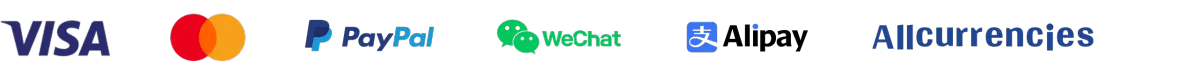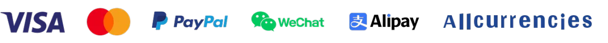 card(Visa and Master card), Wechat pay, Alipay and all currency.
